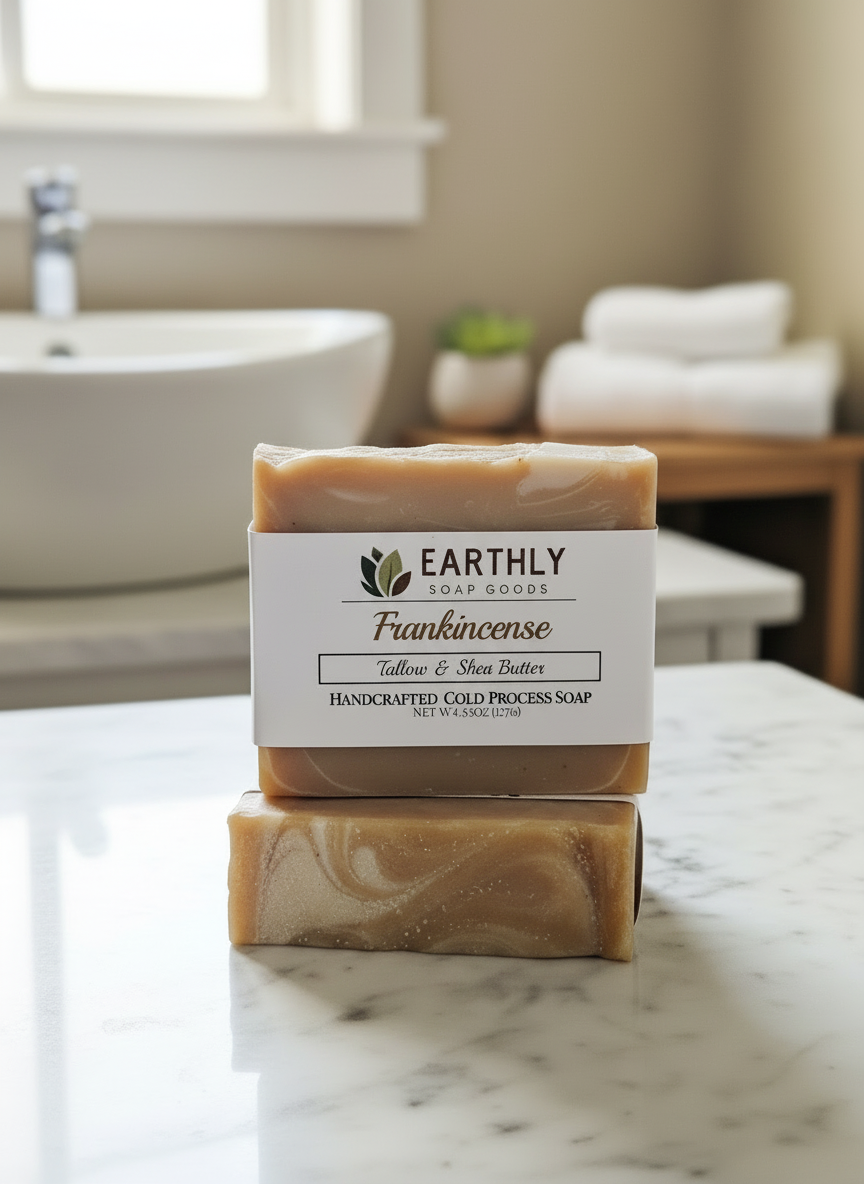 This soap is made with a gentle blend of tallow, shea butter & coconut milk. Scented with a classic Frankincense scent.